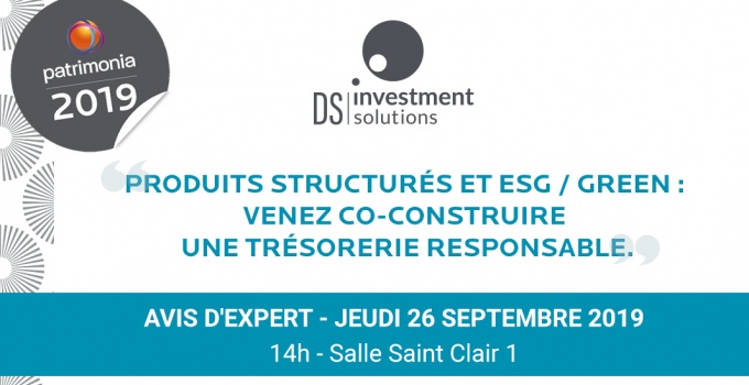 Atelier « Produits structurés et ESG/Green : venez co-construire une trésorerie responsable » avec Brice Gimeno, Président de DS Investment Solutions, le jeudi 26 septembre à 14h, salle Saint-Clair 1.